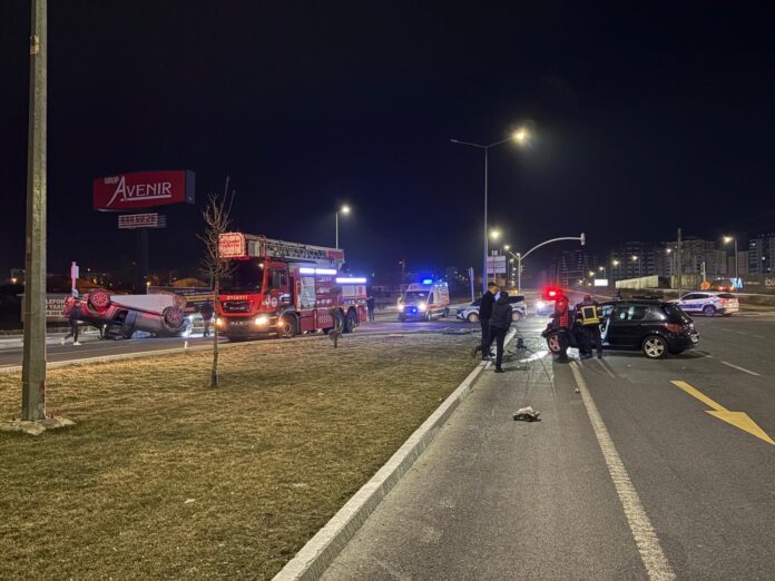 Otomobil ile kamyonetin çarpıştığı kazada, kamyonet takla attı, 2 sürücü yaralandı.