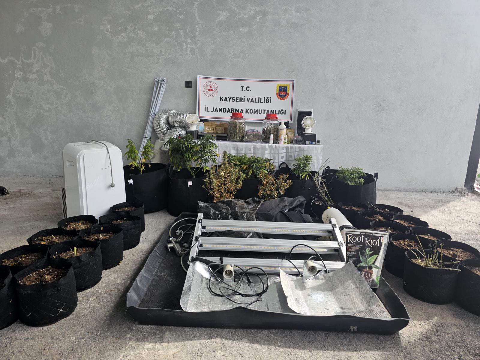 İl Jandarma Komutanlığı ekipleri, uyuşturucu ticareti yapan kişilerin yakalanmasına yönelik çalışma başlattı. Bu kapsamda T.U.’nun uyuşturucu ticareti yaptığı belirlendi. Şüpheli adresine düzenlenen operasyonda yakalandı. Adreste yapılan aramalarda 2 kilo 470 gram skunk, 10 kök Hint keneviri, iklimlendirme çadırı, aydınlatma sistemi, havalandırma sistemi, oda nemlendirici ve 1 adet soğutucu ele geçirildi. Gözaltına alınan şüpheli, Kocasinan İlçe Jandarma Komutanlığı’na götürüldü.  Haber Merkezi