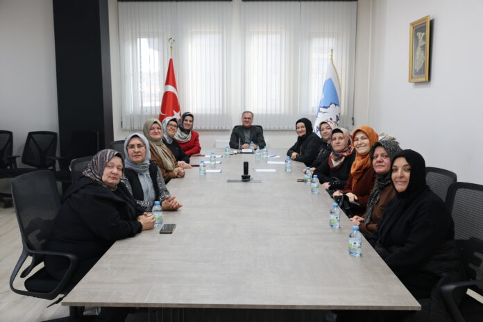 Takva Camii Kur’an Kursu hocası ve Engelli Koordinatörü Gülbahar Aşır ile işitme engelli hanım öğrenciler, Hacılar Belediye Başkanı Bilal Özdoğan’ı makamında ziyaret etti.