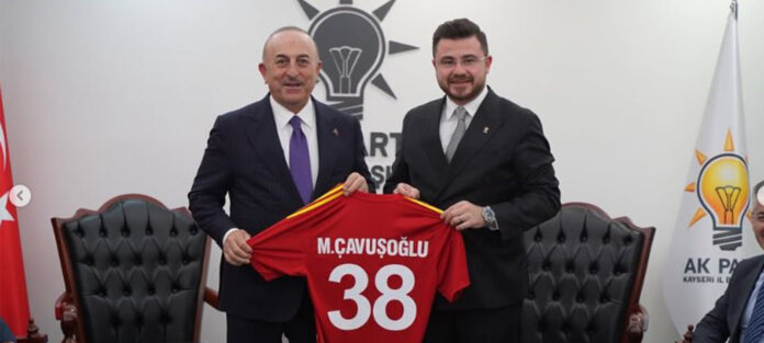 AK Parti Kayseri İl Başkanı  Hüseyin Okandan, eski bakan Mevlüt Çavuşoğlu’na Kayserispor forması hediye etti.