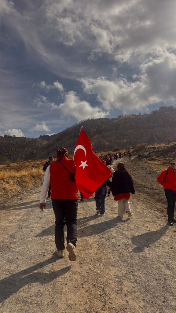 Yürüyüşe başlanmadan önce katılımcılar, orman terapisi deneyimi yaşadı. Doğanın içinde yapılan farkındalık etkinlikleriyle katılımcılar hem zihinsel bir sakinlik kazandı hem de güne ruhsal olarak hazırlandı. Programın ana teması olan cumhuriyet yürüyüşü başladı. Türk Bayraklarıyla donatılmış orman yolları, korteje katılan yüzlerce gönüllüyle kırmızı beyaza büründü. Katılımcılar ellerinde bayraklarla marşlar söyleyerek, adım adım cumhuriyetin 102 yıllık onur yürüyüşünü gerçekleştirdi. ‘Ne mutlu Türküm diyene!’ sesleri Ortaseki ormanlarında yankılandı. Kortej boyunca dalgalanan bayraklar, cumhuriyetin ruhunu yeniden canlandırdı.