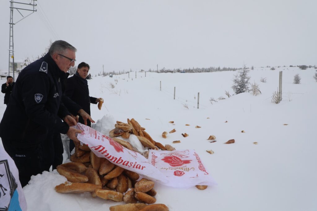Develi Belediye Başkanı Adem Şengül ve zabıta ekipleri, kar yağışı nedeniyle yiyecek bulmakta zorlanan sokak hayvanlarına mama ve ekmek bıraktı.