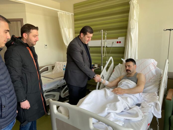 MHP Kayseri Milletvekili Baki Ersoy, suç örgütlerine yönelik düzenlenen operasyonda yaralanan özel harekât polisi Erol Bilen Kaplan'ı tedavi gördüğü hastanede ziyaret etti.