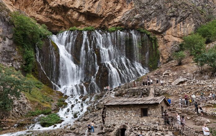 Kayseri’nin Yahyalı ilçesinde Aladağlar Milli Parkı sınırları içerisinde yer alan Kapuzbaşı Şelalesi yaz mevsiminde yerli ve yabancı turistlerin uğrak noktalarının başında yer alıyor. 700 metre rakımda bulunan Kapuzbaşı Şelalesi, suyun kaynağından çıktığı şekilde aşağıya dökülmesiyle dikkat çekiyor. Havadan çekilen şelalenin eşsiz görüntüsü izleyenleri kendine hayran bıraktırıyor. Şelale, Aladağlar’ın zirvesinde bulunan kar ve buzul sularından besleniyor. İrtifa akışı itibariyle Uganda’da yer alan 100 metreden dökülen Victoria Şelalesi hariç Amerika’da bulunan Niagara Şelalesi (55 metre), Finlandiya’da bulunan İmatra Şelalesi (25 metre), Erzurum’daki Tortum Şelalesi’nden (50 metre), Antalya’daki Düden Şelalesi (25 metre) ve Manavgat Şelalesi’nden (5 metre) daha büyük olarak biliniyor. 5 tane büyük, 2 tane küçük olmak üzere 7 şelalenin bulunduğu bölge, suyun akarken çıkardığı ses ve oluşturduğu serinlikle büyük beğeni topluyor. Etrafında bulunan piknik alanları ve trekking parkuru ile ziyaretçilerini ağırlıyor.