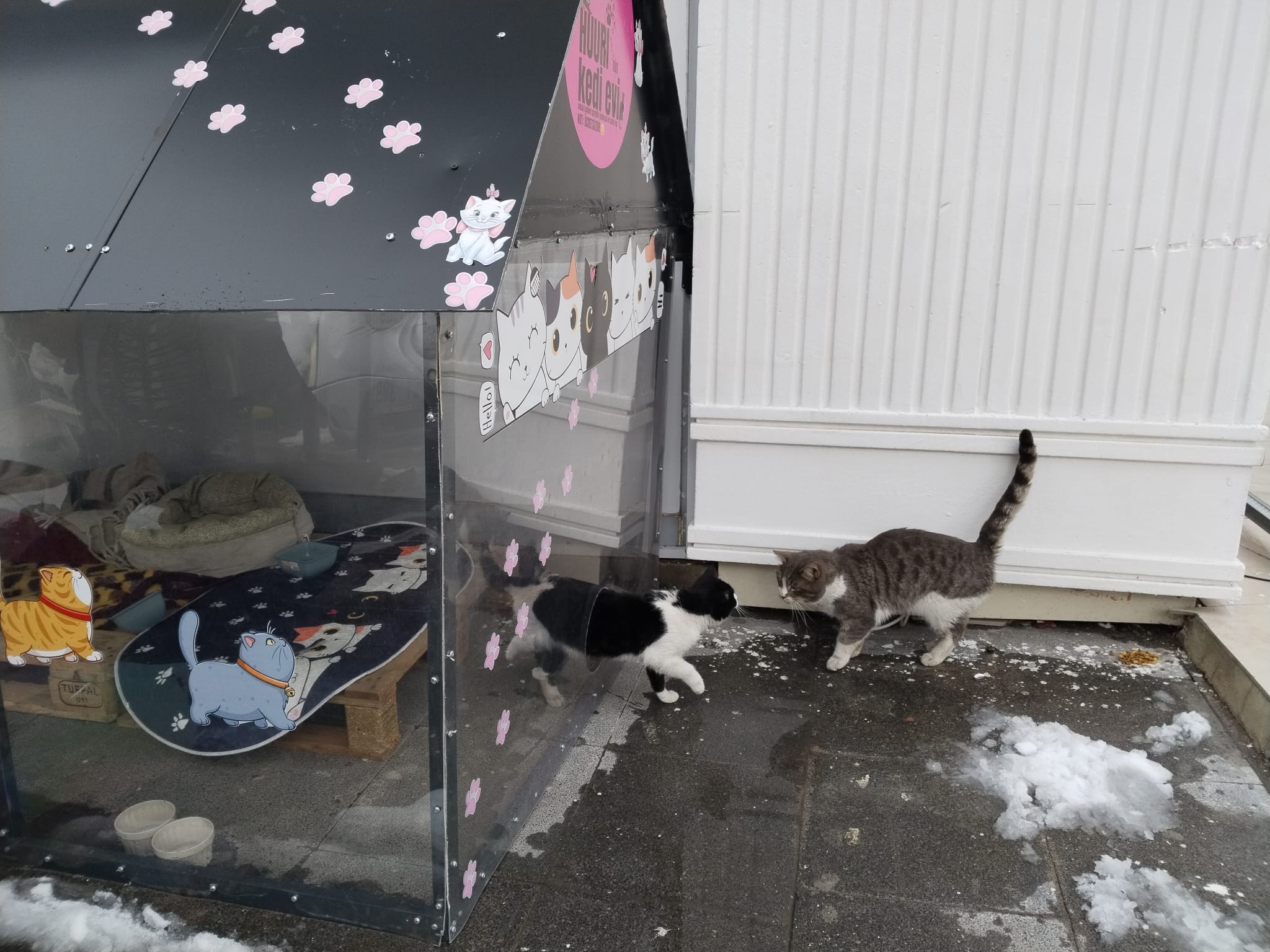 Kayseri’de faaliyet gösteren bir işletme, kış aylarında etkisini artıran soğuk hava nedeniyle sokak kedileri için örnek bir uygulama hayata geçirdi. İşletmenin yanına yapılan ısıtmalı kedi evi sayesinde kediler hem soğuktan korunuyor hem de düzenli olarak beslenebiliyor.