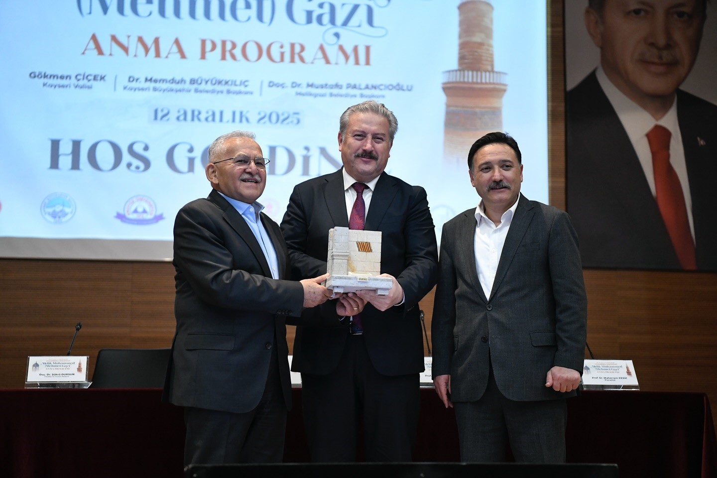 Büyükşehir Belediye Başkanı Memduh Büyükkılıç, Kayseri Valisi Gökmen Çiçek ile birlikte, Melik Muhammed (Mehmet) Gazi’yi anmak için düzenlenen programlara katıldı. Kayseri’nin tarihi köklerine sahip çıkmak amacıyla yapılan programda, gün boyu süren etkinlikler, şehrin kültürel zenginliğini ve tarihi mirasını yeniden gündeme taşıdı. İlk olarak, öğle saatinde Danişmendli Hükümdarı Melik Muhammed (Mehmet) Gazi’nin Camiikebir’deki kabrine gidilerek, dualarla rahmetle anıldı. Başkan Büyükkılıç, Melik Muhammed (Mehmet) Gazi’nin Kayseri’nin kimliğine, ruhuna ve medeniyet hafızasına büyük katkı sağladığını vurgulayarak, “Melik Mehmet Gazi’nin şehrimize kazandırdığı değerler, bugün hala bizlere ilham vermeye devam ediyor” dedi. Akşam ise Danışmendli Hükümdarı Melik Muhammed (Mehmet) Gazi’yi Anma Programı, Melikgazi Belediyesi Tiyatro Salonu’nda gerçekleşti. Etkinlik, Kur’an-ı Kerim tilavetiyle başladı, ardından İl Müftüsü Durmuş Ayvaz’ın duası ve kısa bir film gösterimiyle devam etti. Törene katılanlar, şehrin tarihinde iz bırakmış bu büyük hükümdarı daha yakından tanıma fırsatı buldu. Büyükşehir Belediye Başkanı Dr. Memduh Büyükkılıç, törende yaptığı konuşmada, “Şehrimizin mimarı olan, bu şehrin kurulmasında büyük emeği geçen değerli komutanımız Melik Muhammed Mehmet Gazi’yi anmaktan onur duyuyoruz” dedi. Şehrin kurucusuna sahip çıkmanın, onu anlamanın, gençlere hatırlatıp, sahiplenmelerini sağlamanın herkesin görevi olduğunu vurgulayan Başkan Büyükkılıç, “Böyle güzel bir organizasyonda emeği geçenlere teşekkür ediyorum. Değerli Valimizin her zaman şehrimizin kültürel çalışmalarında öncü rol oynadığını hatırlatarak, iyi ki varsınız diye dua ediyorum” diye konuştu. Büyükkılıç, Camikebir bölgesinde yapılan projelerden de söz ederek, “Camikebir bölgesinde şehrin mimarı olan, vatansever, Selçuklu’nun temellerinin atılmasına vesile olan, Danışmend döneminde şehrimizin başkent olarak anılmasına vesile olan insandan söz ediyoruz, inşallah onun felsefesine layık oluruz. Camikebir’in etrafında bizler de bugünün hizmetkârı olan yerel yöneticiler olarak gerekli düzenlemeleri, çalışmaları yapma yönünde irade gösterdiğimizi paylaşmak istiyorum” ifadelerini kullandı. Ayrıca, Başkan Büyükkılıç, şehrin TÜRKSOY 2027 Türk Dünyası Kültür Başkenti adaylık sürecine de dikkat çekerek, şunları söyledi;