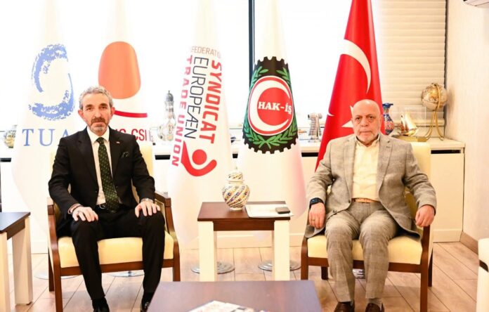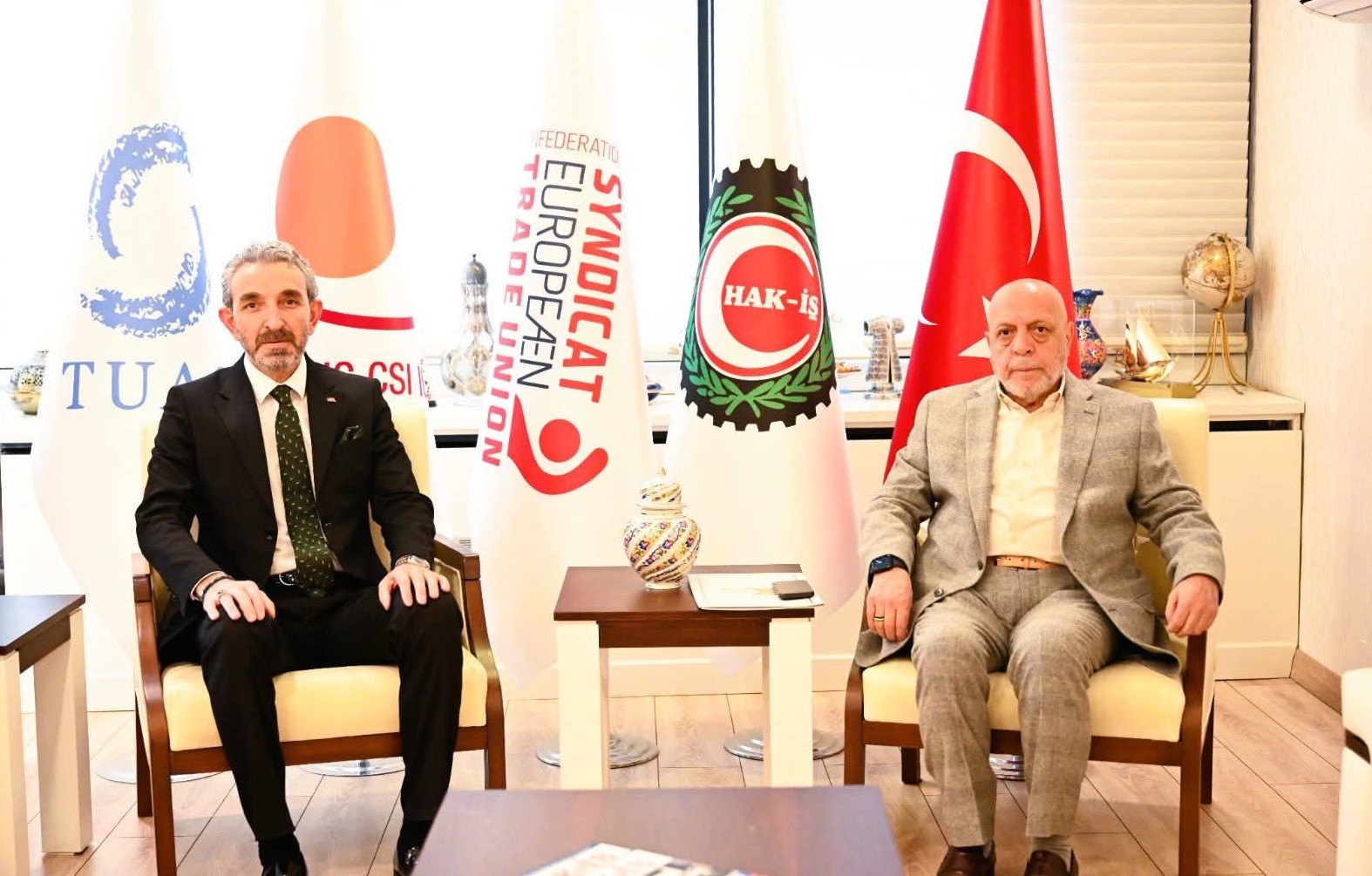 HAK-İŞ Konfederasyonu Kayseri İl Başkanı ve Hizmet-İş Sendikası Şube Başkanı Yavuz Navruz, HAK-İŞ Konfederasyonu ve Hizmet-İş Sendikası Genel Başkanı Mahmut Arslan’ı makamında ziyaret etti.