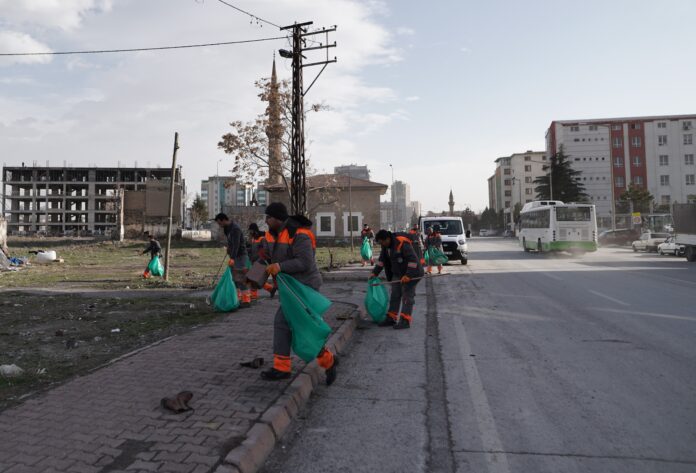 Melikgazi’de gece itibarıyla şiddetlenen rüzgârın etkisiyle cadde ve sokaklarda biriken çöpler, ağaç dalları ve kirlenen alanlar, Melikgazi Belediyesi Temizlik İşleri Müdürlüğü ekiplerince temizlendi.