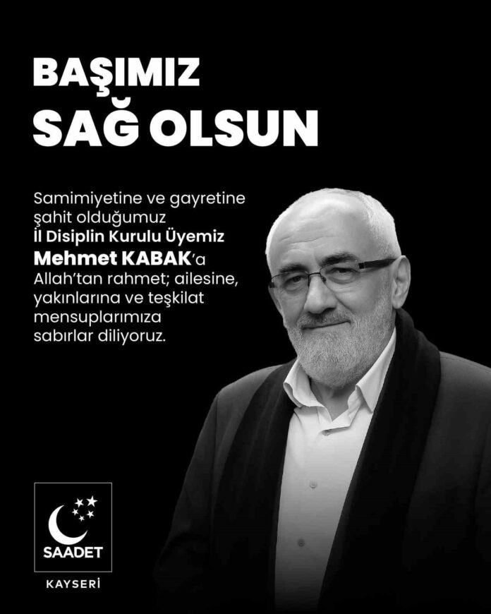 “Teşkilatımızın müdavimlerinden, değerli büyüğümüz, kıymetli yol arkadaşımız Mehmet Kabak, Rahmet-i Rahman’a kavuşmuştur. Merhum büyüğümüze Cenab-ı Allah’tan rahmet, kederli ailesine, yakınlarına ve tüm teşkilatımıza sabır ve başsağlığı diliyorum.”