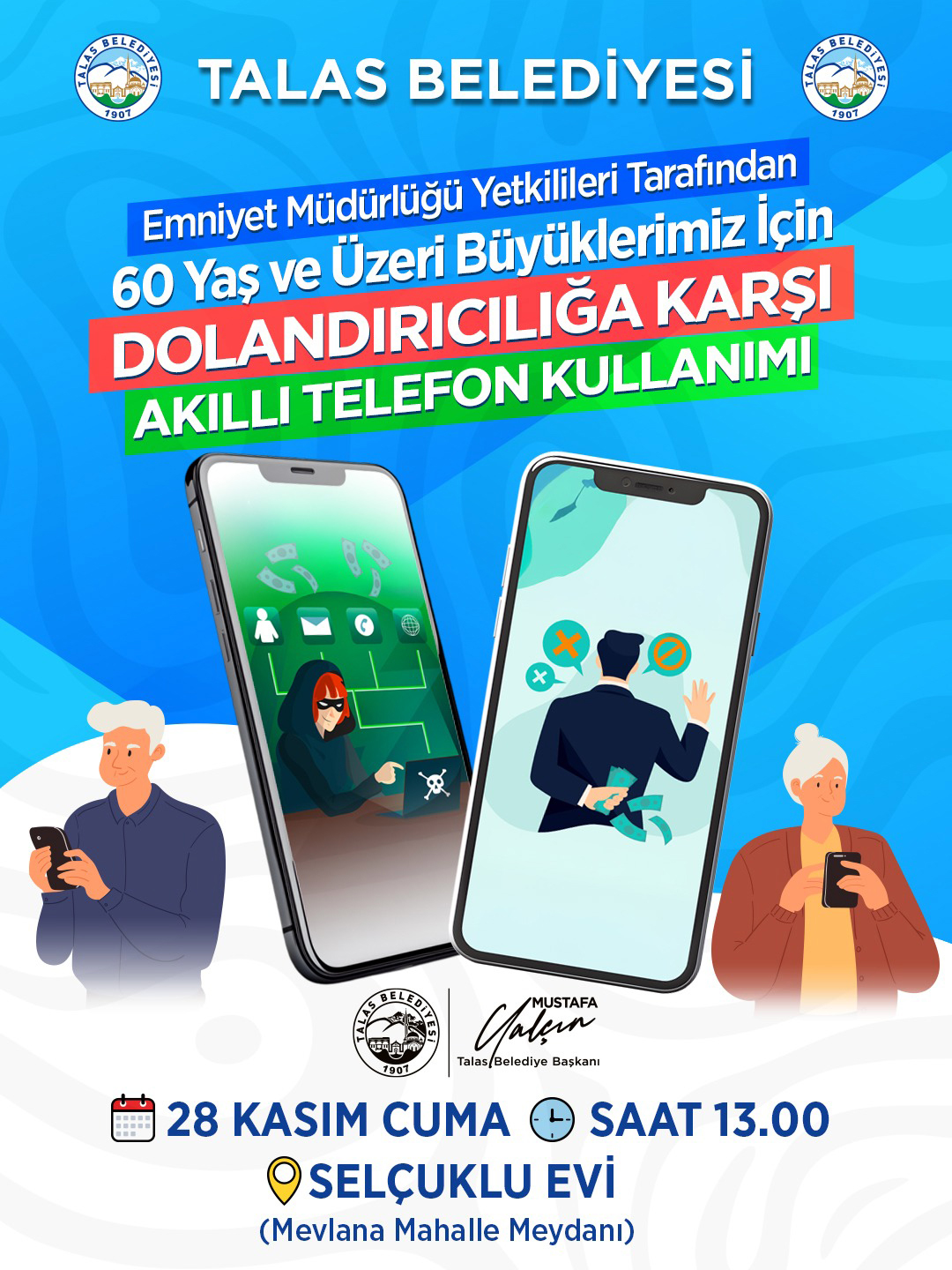 Talas Belediyesi, yaş almış hemşehrilerinin dijital ortamlarda daha güvende olması için önemli bir farkındalık çalışmasına imza atıyor.