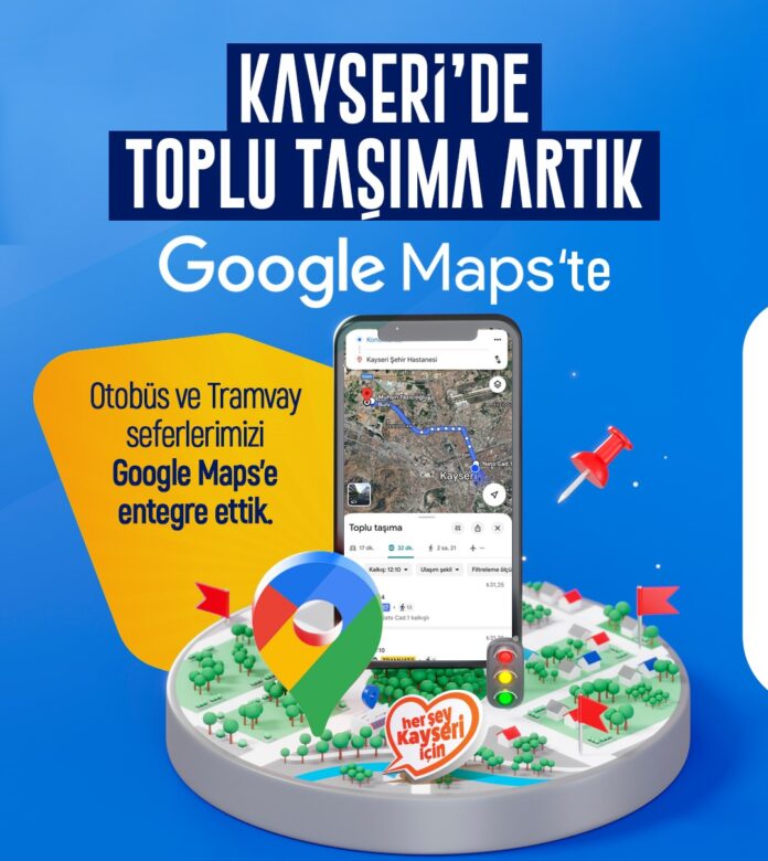 Büyükşehir Belediyesi, Akıllı Şehir Kayseri vizyonu doğrultusunda hayata geçirdiği GTFS entegrasyonu ile toplu ulaşım verilerini Google Maps’e taşıdı.