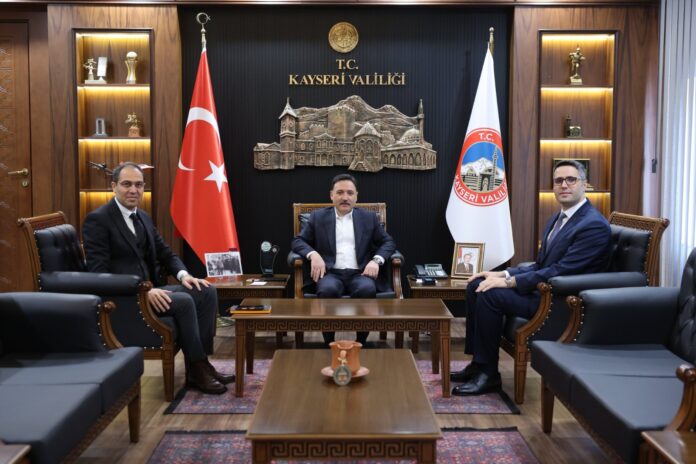 Kayseri Devlet Hastanesi’nin yeni başhekimi Ali Çöl, İl Sağlık Müdürü Mehmet Erşan ile birlikte Vali Gökmen Çiçek’i ziyaret etti.
