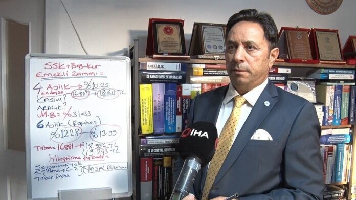 Karakaş, SSK-BAGKUR emeklerinin aylıklarına 6 aylık enflasyon farkına göre güncelleme yapıldığını dile getirdi. Karakaş, “Bugün itibariyle Temmuz, Ağustos, Eylül, Ekim ayı enflasyon oranları kesinleşmiş durumda. Dolayısıyla 4 aylık enflasyon farkına göre yüzde 10, 25 oranındaki zammın kesin olduğunu söyleyebiliriz. Eğer ki hükümet en düşük emekli maaşlarına farkı aynen yansıtırsa bu durumda 4 ay bazında en düşük emekli maaşı 16 bin 881 lira iken yüzde 10,25’i baz aldığımız zaman bugün itibariyle 18 bin 611 lira kesin olduğunu söyleyebiliriz” açıklamasında bulundu.
