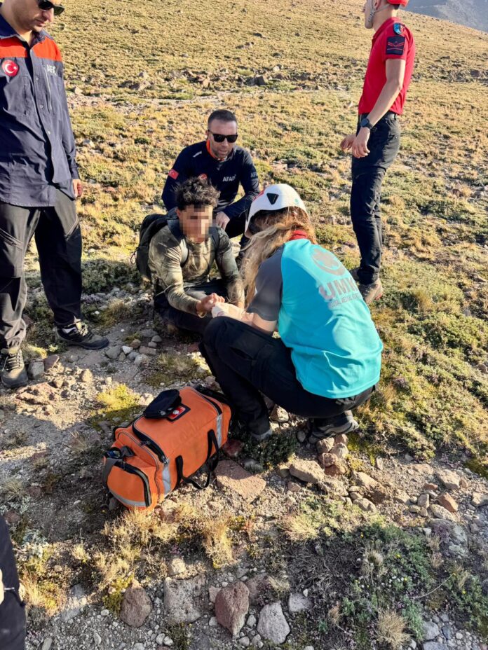 Kayseri'de Erciyes Dağı'nda zirve yürüyüşü yaparken mahsur kalan genç dağcıya ulaşıldı.