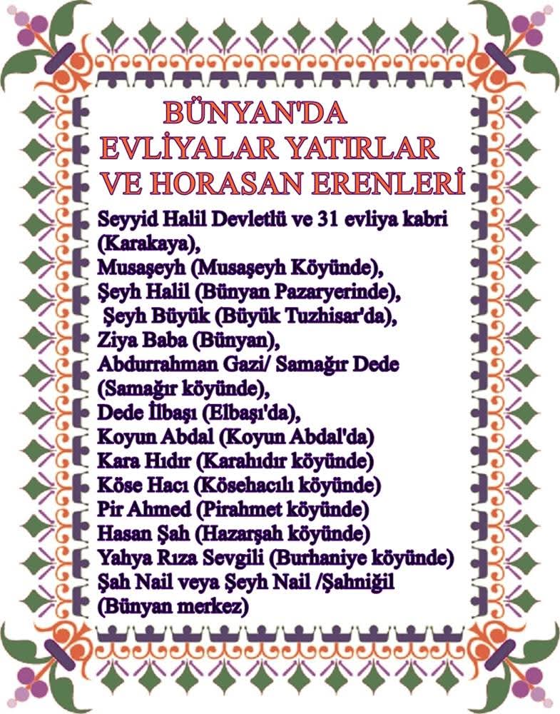 Karakaya’nın etrafındaki yerleşim yerlerinin adlarını da o köyde bulunan bir yatırdan aldığına şahit olmaktayız. Adına evliya, yatır veya Horasan Erenleri dediğimiz bu şahsiyetler, bu coğrafyayı ne büyük bir etki altında bırakmışlar işte bu lisetede buna şahitlik ediyor.
