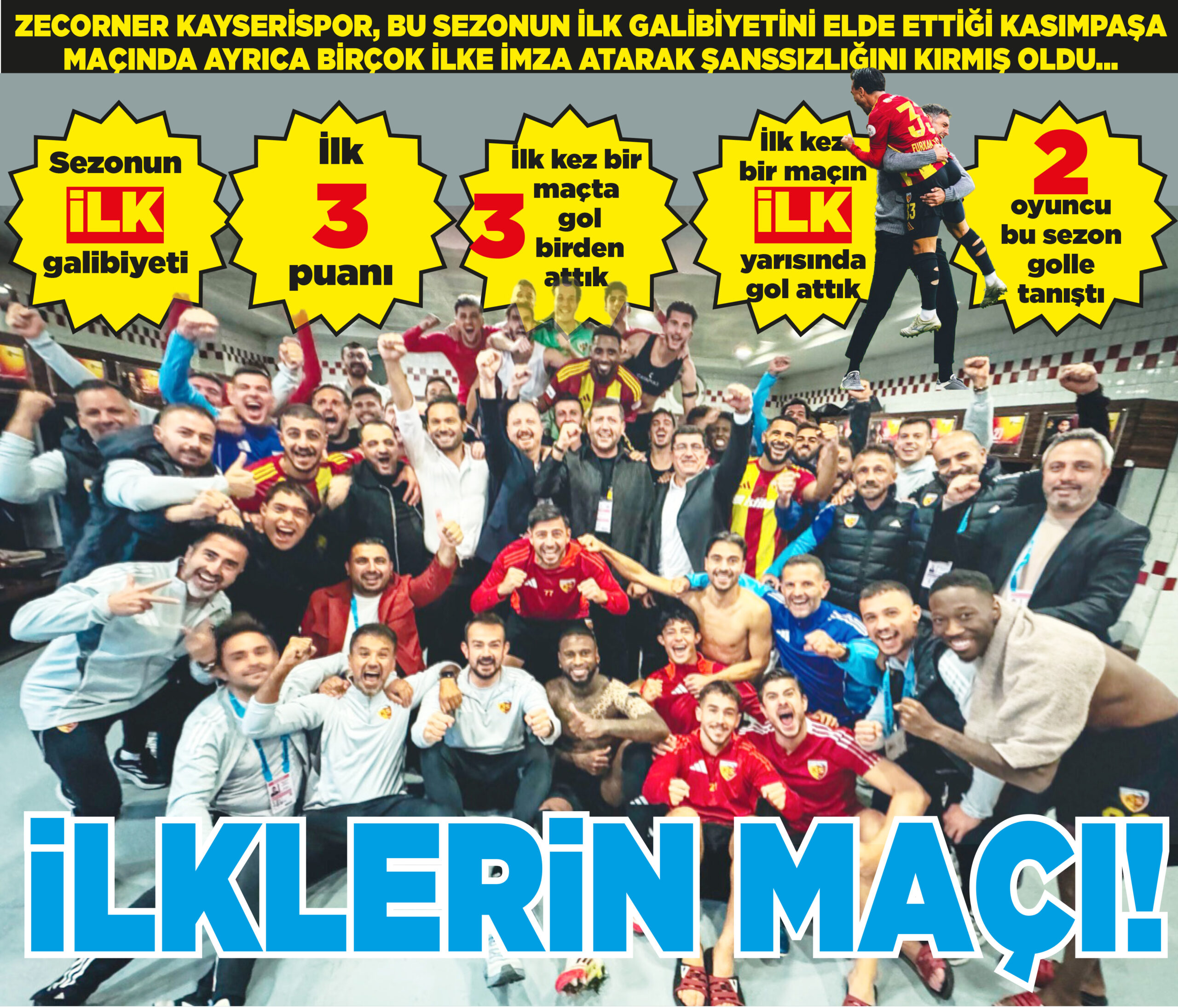 Zecorner Kayserispor, bu sezonun ilk galibiyetini elde ettiği Kasımpaşa maçında ayrıca bir çok ilke imza atarak şanssızlığını kırmış oldu