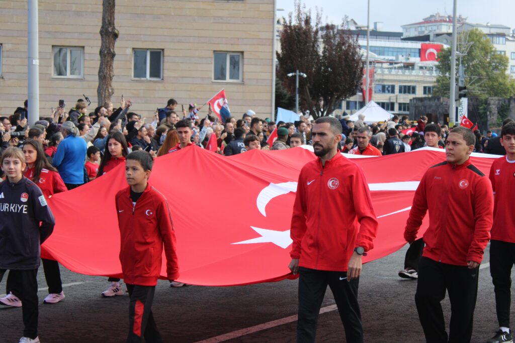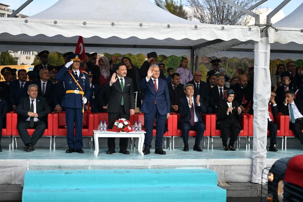 Vali Gökmen Çiçek’in makamında tebrikleri kabulü ile başlayan program, Cumhuriyet Meydanı’nda devam etti. Saygı duruşunda bulunulması ve İstiklal Marşı’nın okunmasının ardından başlayan programa Kayseri Valisi Gökmen Çiçek, Kayseri Büyükşehir Belediye Başkanı Memduh Büyükkılıç, AK Parti Kayseri milletvekilleri Dursun Ataş, Sayın Bayar Özsoy, Ayşe Böhürler, protokol üyeleri ve vatandaşlar katıldı. Programda geleneksel halk oyunları ve spor gösterileri düzenlendi. Cumhuriyet Meydanı’nda yapılan programda konuşan Kayseri Valisi Gökmen Çiçek ” Bizim tarihimizde tek bir kara leke yoktur. Biz 3 kıtaya hükmederken diller, dinler kültürler özgürce bağımsızca insanların yaşamasına müsaade ettik. Bugün diller, dinler ve kültürler hala hayattadır. Bizim her yıkılışımızda veya yükselişimizde hiçbir utanılacak sahne bu milletin geçmişinde olmamıştır. 102 yıl önce kap karanlık zamanlar yaşadık. 4 bir yandan ülkemizi bölmek saldırdılar. Vatanımızın dört bir yanı işgal altındaydı. Karanlık zamanlardı, milletimiz yorgun düşmüştü. Gazi Mustafa Kemal Atatürk milletiyle kenetlenerek; köy köy, mahalle mahalle, sokak sokak, şehir şehir bağımsızlık meşalesini yakarak. Milletiyle el ele karanlıkları yıkarak milletimizi aydınlığa çıkardı. Biz bu coğrafyaya diz çökmek için değil, dimdik ayakta durmak için yemin ettik. Her şeye rağmen bu coğrafyada hep var olacağız. Sadece kendimiz için değil kendimiz içinde var olacağız. Sevgili gençler sizler bizim umudumuzsunuz, ümidimiz, geleceğimizsiniz, kızıl elmamızsınız sizler düşer ya da yıkılarsanız milletimizin geleceği yıkılır. Ben bu duygularla başta Mareşal Gazi Mustafa Kemal Atatürk olmak üzere, tüm şehitlerimizi ve gazilerimizi rahmetle anıyor herkese saygılar sunuyorum” dedi.