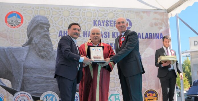 Yılın Ahisi özel ödülü de Kayseri Üniversitesi Rektörü Prof. Dr. Kurtuluş Karamustafa’ya verilirken, Başkan Büyükkılıç tarafından kaftan giydirildi ve plaket takdim edildi.
