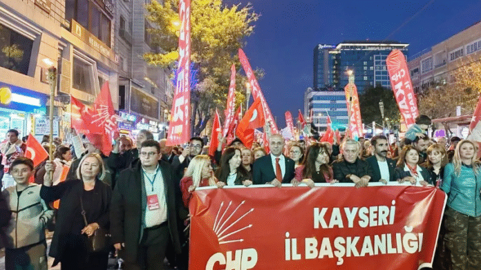 CHP İl Başkanlığı tarafından Cumhuriyeti’n ilanının 102. Yıldönümü nedeniyle yapılan yürüyüş esansında açılan flamalarda Kayseri adında matbaa hatasından kaynaklanan tashih hatası ile S harfinin unutulmuş olmasına yönelik eleştirileri İl Başkanı Ümit Özer göğüsledi.