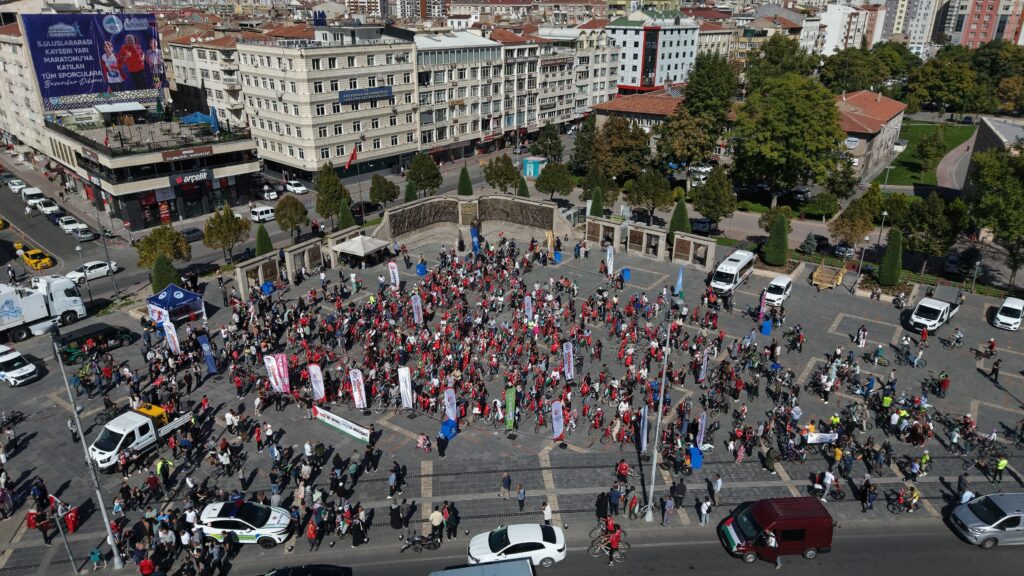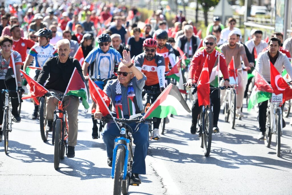 Cumhuriyet Meydanı’ndan başlayan “Kayseri’den Filistin’e Küresel Sumud Filosu’na Destek” bisiklet turu, Recep Tayyip Erdoğan Millet Bahçesi Esenyurt Kapı’da tamamlanırken etkinliğe gencinden yaşlısına çok sayıda vatandaş katılarak Küresel Sumud Filosu’na ve Filistin’e destek mesajı verdi.