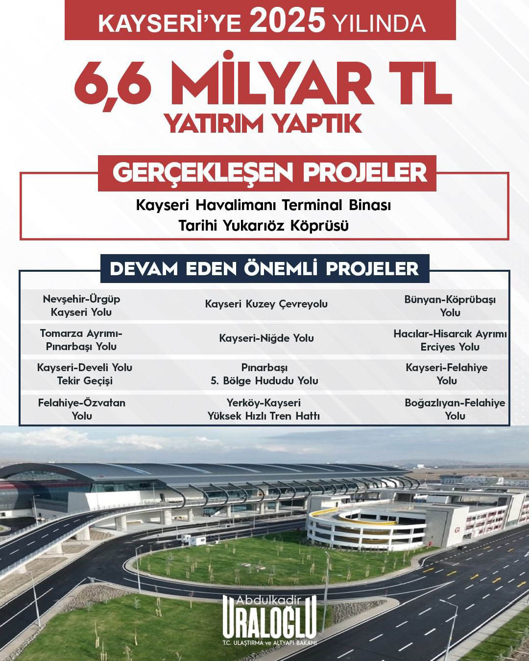 Türkiye’nin en önemli geçiş noktalarından birisi olan Kayseri’nin ulaştırma bakanlığı tarafından “Yatırım yaptık” denilen detayları diğer illerle kıyaslandığında acı gerçek gün yüzüne çıkıyor.  Ulaştırma ve Altyapı Bakanlığı 2025 yılında Kayseri ve bazı illere yaptığı yatırımlara gelin hep birlikte göz atalım. Buna göre bakanlık geçtiğimiz yıl itibarıyla Çorum’a 12,8 Milyar TL, Denizli’ye 13,2 milyar TL, Kocaeli’ye 16,5 Milyar TL yatırım yaparken Kayseri’de gerçekleştirilen yatırım tutarı ise 6,6 milyar TL’de kaldı. Bakanlık tarafından paylaşılan bu detayları görüp, Felahiye-Özvatan-Sivas hattında hala bir arpa boyu mesafe kat edilememiş olması birçok soruyu da beraberinde getirdi. Peki neden yatırım anlamında bakanlıktan gereken destek alınamadı? Neden Kayseri diğer illerle kıyaslandığında taca çıkartıldı?