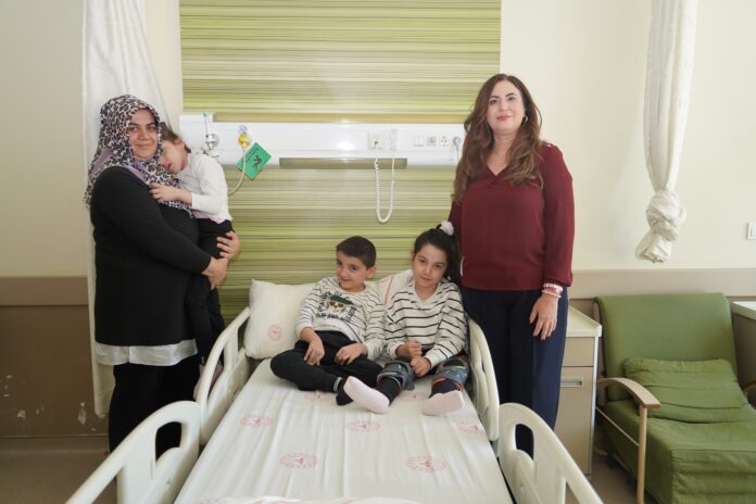 Çocuklarının hikayesini anlatan Ayşe Kemik, “4 çocuk annesiyim, 1 tane de oğlum var. Üçüzlerim 29 haftalık doğdular. Prematüre oldukları için kuvözde kaldılar. Doğum esnasında oksijensiz kaldıkları için serebral palsi teşhisi kondu. Kuvözde biraz sıkıntılarımız oldu. Kendimizi toparlamamız zor oldu ama 2 yaşından sonra şehir hastanesinde rehabilitasyona başladık. Aslında 8 aylık iken başlamıştık ama çok ilerleyemedik. 2 yaşında doktorla görüşme fırsatımız oldu. Serap doktorumuzun desteğiyle güzel ilerledik. Gülce’nin oturması gelişti, Çınar, şu an 20 dakikada ancak oturabiliyor. Burası çok güzel. Doktorumuz Serap Hanım çok bilgili ve ilgili bir doktor. Ailelere karşı tutumu çok iyi. Şehir hastanesi; fiziğiyle, robotu, havuzu gibi imkânların bulunmasıyla çocuklara çok güzel gelişimler katıyor. Doktorlar çocukları muayene ettikten sonra neye ihtiyaçları var ise; bir gün fizik, bir gün robot, bir gün havuz desteği alıyoruz. Gerçekten çok güzel bir hastane. Ortam çok güzel, çok kolay. Yani engelli bireylerin rahatlıkla kalabileceği güzel bir hastane. Bizler Yahyalı’da oturuyoruz. Yahyalı’dan buraya senede 2 defa geliyoruz, kalıyoruz. Güzel kazanımlarla dönüyoruz eve. Evde de devam ettirmeye çalışıyorum. Üçüz oldukları için biraz daha zorlu. Üçünün de gelişimi çok farklı. Serebral palsi ama üçünün de durumu oldukça farklı. Fiziki ihtiyaçları farklı, kazanımları farklı. Uzun bir yol. Çocuklarımız doğduğunda nöroloji doktorumuz bize “Çok uzun bir yol” dedi. Bu yol çok güzel de bir yol. Sabırla çok güzel sonuçlar elde edeceğiz inşallah. Birden olacak bir şey değil. Fizik tedavi ilaç gibi değil. Yavaş ama güzel. Fizik tedaviyle çocuğumun başını dik tutması belki aylar, yıllar alıyor. Yavaş oluyor ama bir şeyler oluyor. Çocuklarım çok mutlular. Onları mutlu etmeye çalışıyorum. Onların bana verdiği duygu çok farklı. Onların yapamadığı her şeyi yaptırmaya çalışıyorsun. Eli, ayağı, öğretmeni oluyorsunuz. Şu anda çocuklarım 8 yaşında, okul çağına geldiler. Evde eğitim alıyoruz, öğretmenimiz eve geliyor. Öğretmen gittikten sonra ben öğretmen oluyorum” diye konuştu.